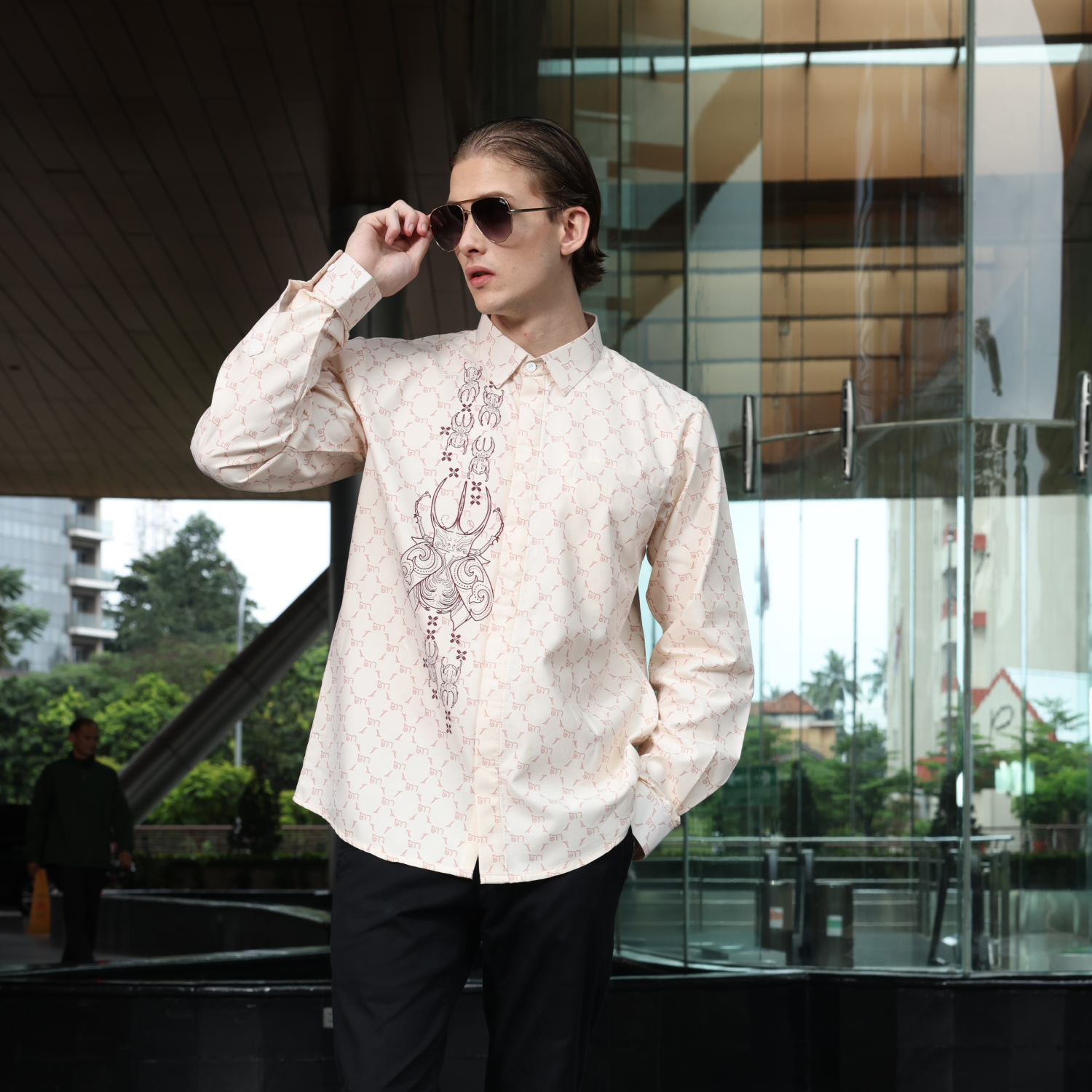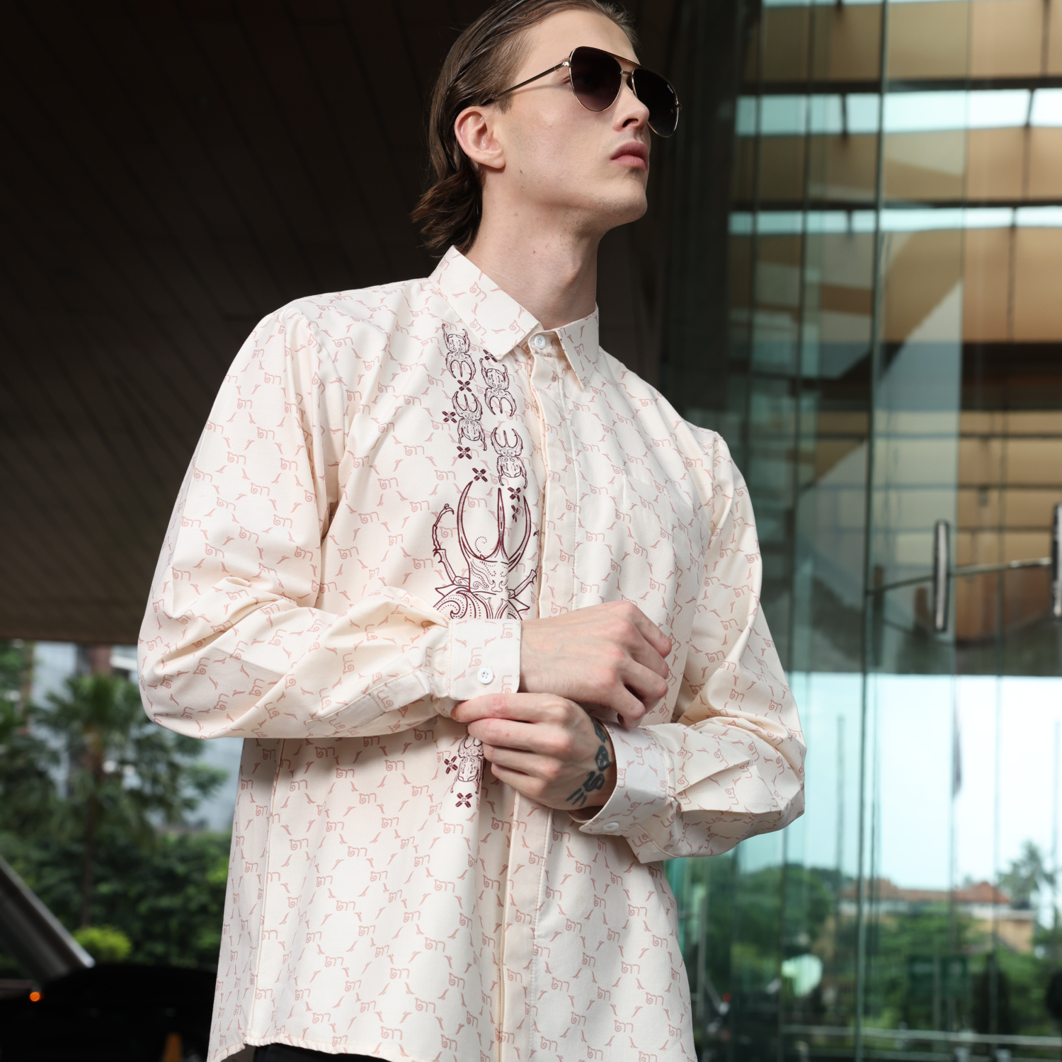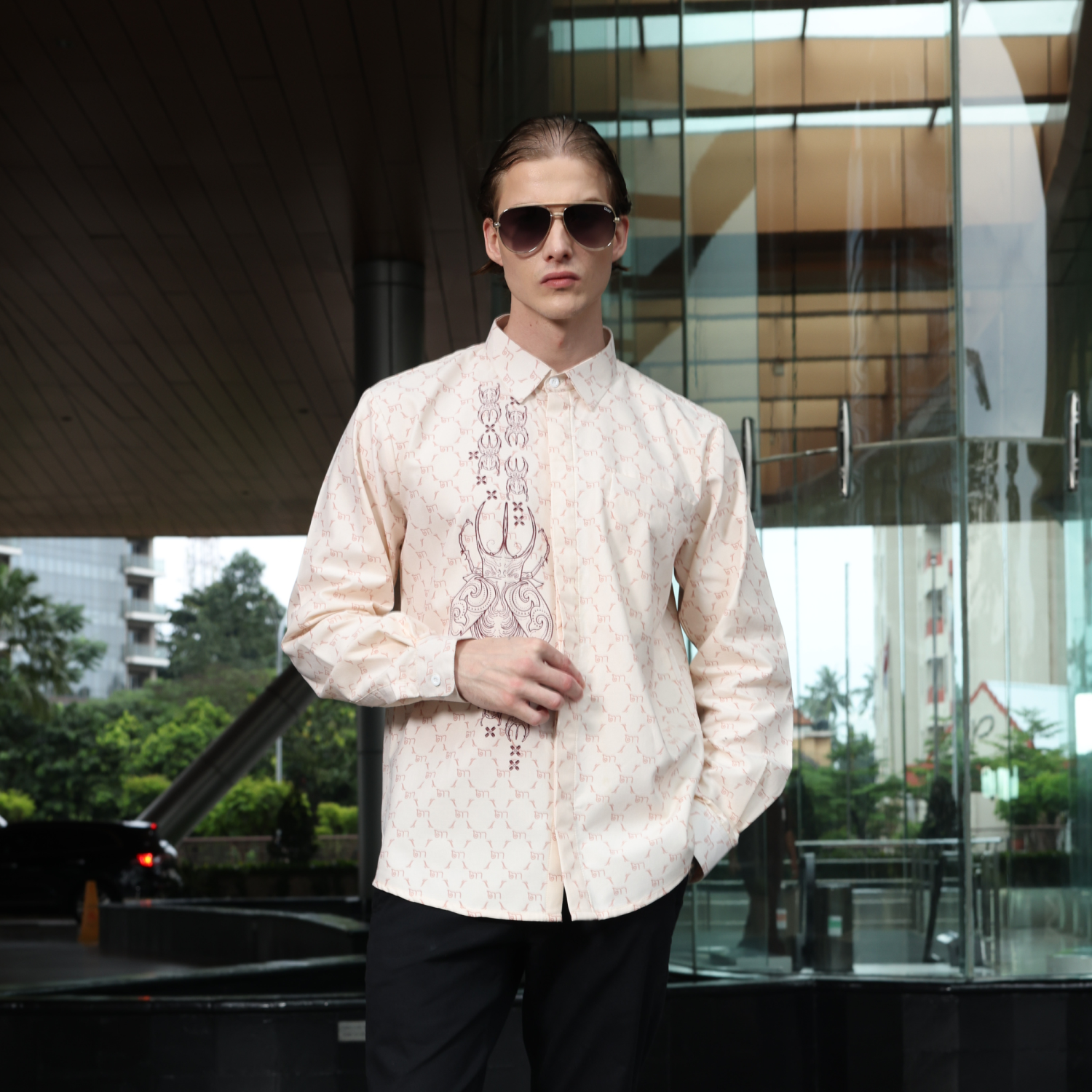 Batik Shirt Exclusive Lucano Broken White Shirt Half Printed – Elegant Slim Fit