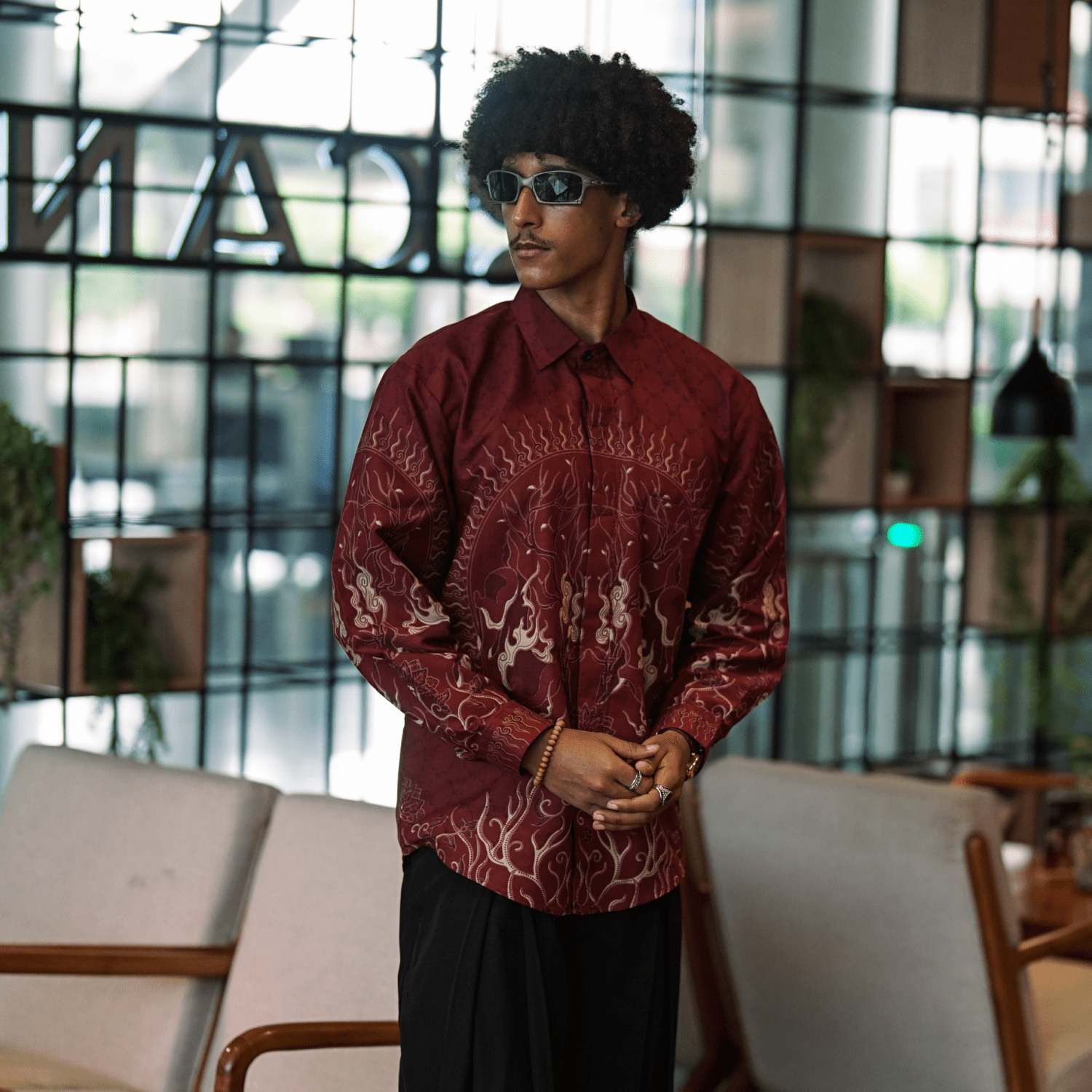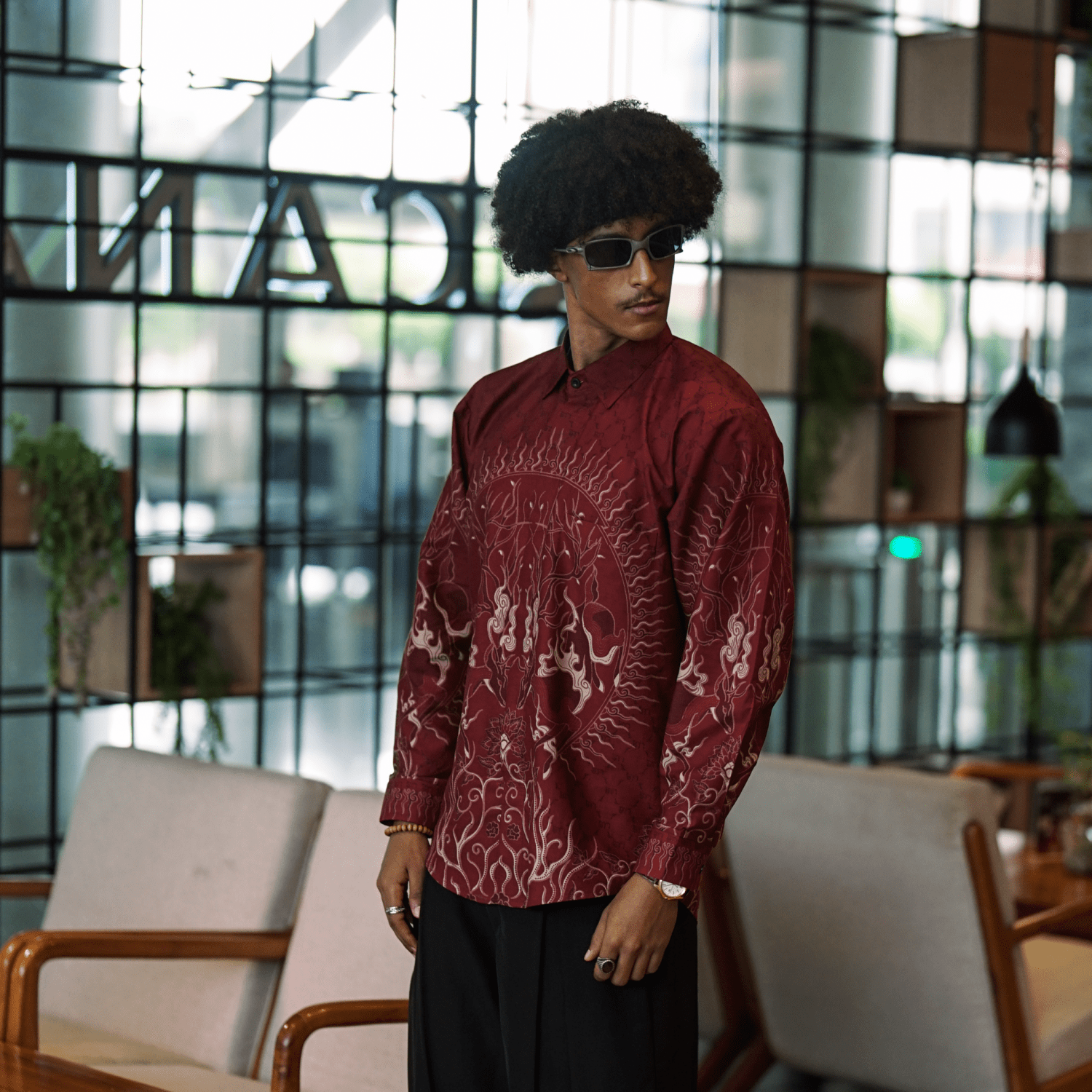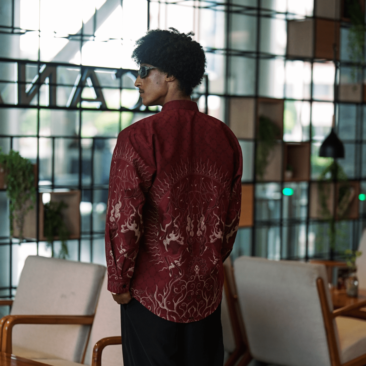 Didesain dengan cutting slim fit yang mengikuti bentuk tubuh, kemeja ini memberikan siluet yang rapi dan proporsional. Detail motif yang artistik menambah nilai estetika tanpa mengurangi kesan formal, menjadikannya pilihan tepat untuk berbagai acara formal maupun semi-formal.