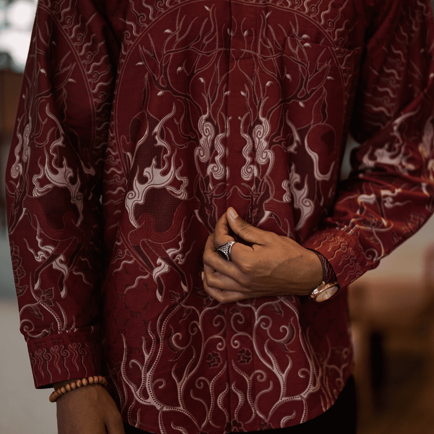 Tampilkan kesan tegas dan elegan dengan Batik Shirt Exclusive Deer Red – Elegant Slim Fit. Dominasi warna merah yang kuat dipadukan dengan motif deer eksklusif menciptakan tampilan yang berkarakter, modern, dan berkelas.