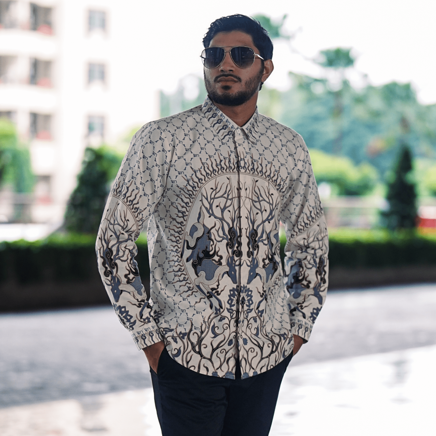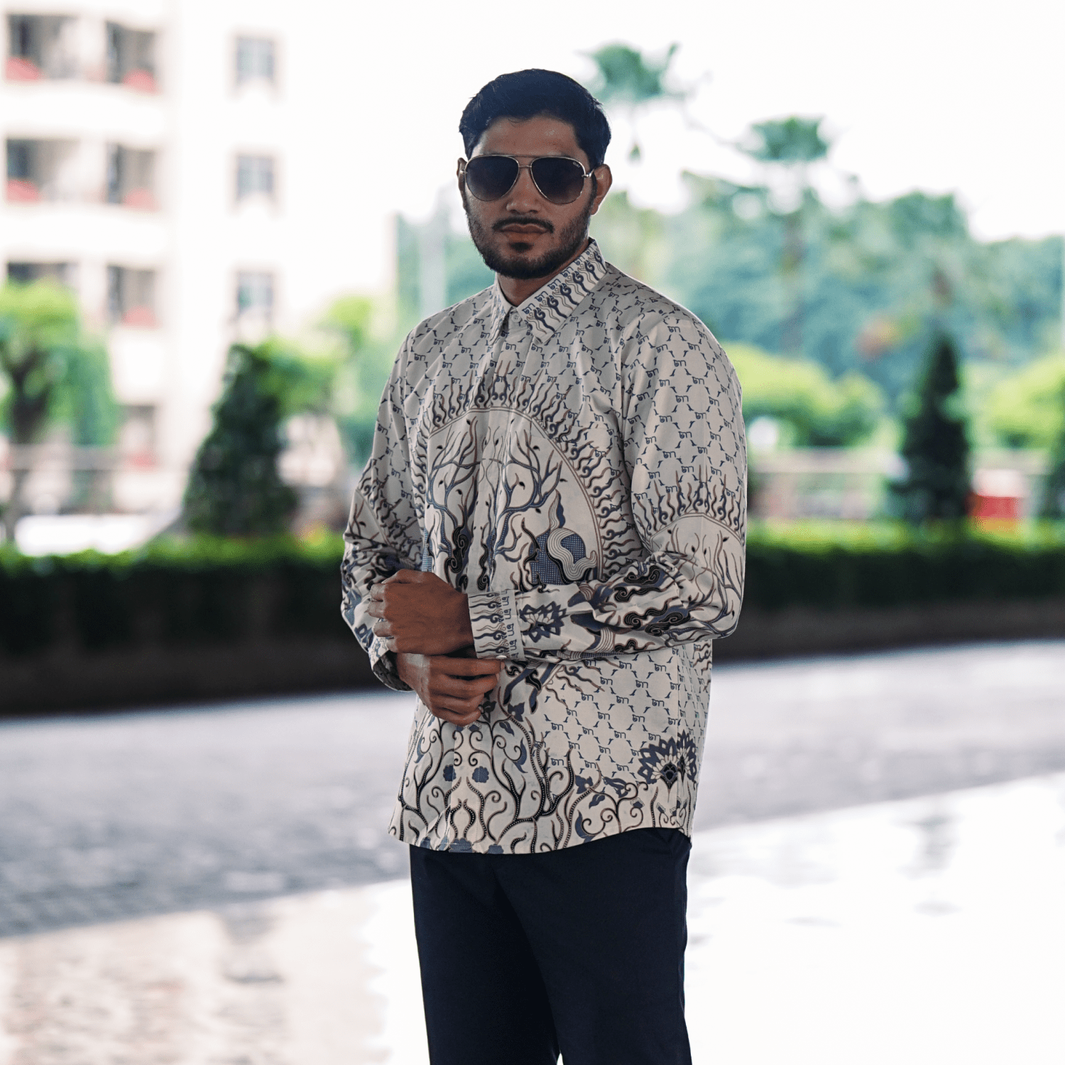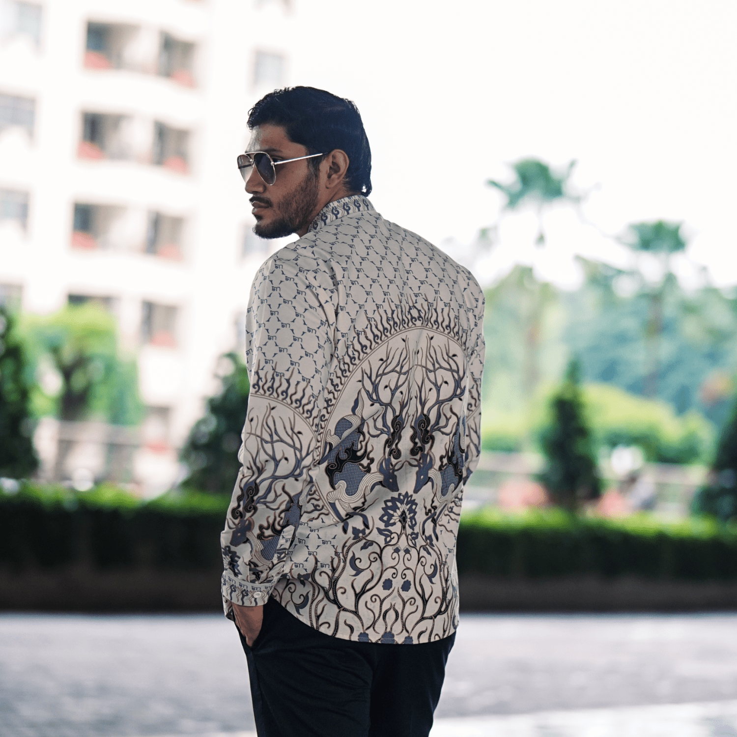 Didesain dengan cutting slim fit yang mengikuti bentuk tubuh, kemeja ini memberikan siluet yang rapi dan proporsional. Detail motif yang tersusun harmonis menambah nilai estetika tanpa menghilangkan kesan minimalis, menjadikannya pilihan tepat untuk acara formal maupun semi-formal.
