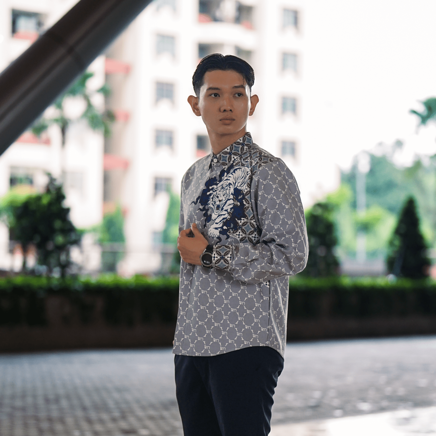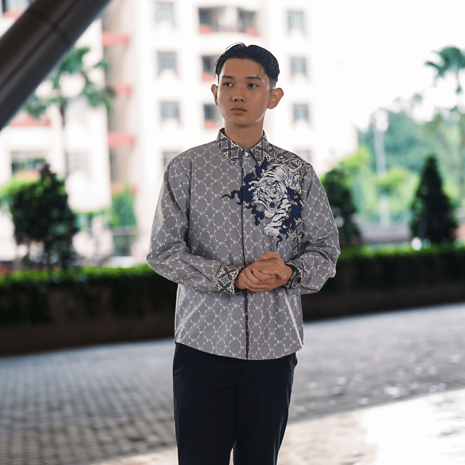 Dirancang dengan cutting slim fit yang mengikuti bentuk tubuh, kemeja ini memberikan kesan rapi dan proporsional saat dikenakan. Detail motif tiger yang dipadukan dengan elemen batik khas menghadirkan nuansa etnik modern yang unik, cocok untuk melengkapi gaya Anda di berbagai kesempatan, baik formal maupun semi-formal.