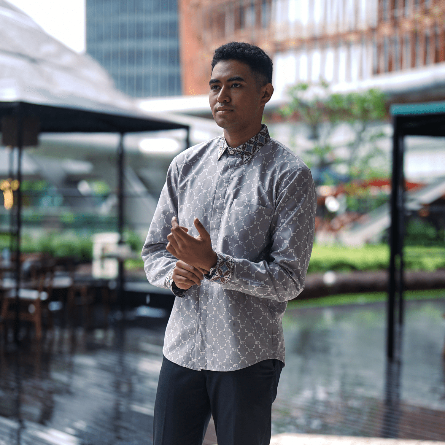 Didesain dengan potongan slim fit yang mengikuti bentuk tubuh, kemeja ini memberikan siluet yang rapi dan sophisticated. Motif harimau yang diolah secara subtle berpadu dengan elemen batik khas, menghasilkan tampilan yang tidak berlebihan namun tetap mencuri perhatian—cocok untuk acara formal hingga semi-formal.
