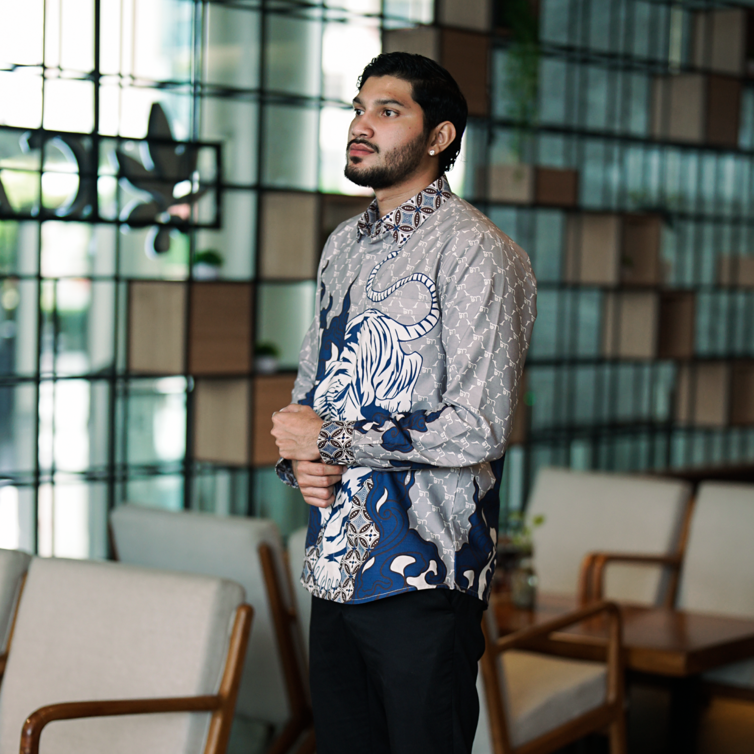 Batik Shirt Exclusive Tigris Grey Shirt Full Printed – Elegant Slim Fit